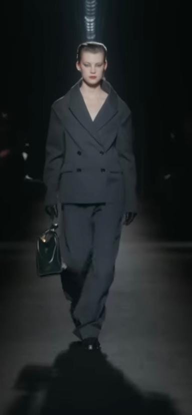 Il défilé che si vede non è niente di diverso da quello a cui Gvasalia aveva abituato il pubblico negli ultimi dieci anni, sfondi scuri, ledwall, facce cupe e make-up che si divide tra tripudio di fard e chiaroscuri netti. Niente lascia trasparire la personalità di Piccioli alla quale ci si era abituati nelle sfilate fatte per Valentino.