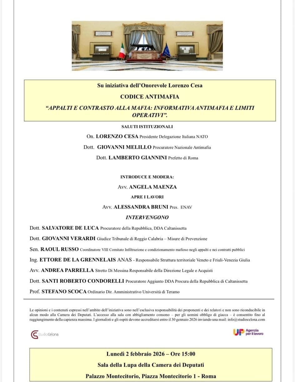 Al dibattito parteciperanno rappresentanti delle istituzioni, magistrati, operatori del diritto e studiosi, con l’obiettivo di confrontarsi sugli strumenti di prevenzione delle infiltrazioni criminali e sui profili di tutela delle imprese coinvolte nelle procedure di affidamento.