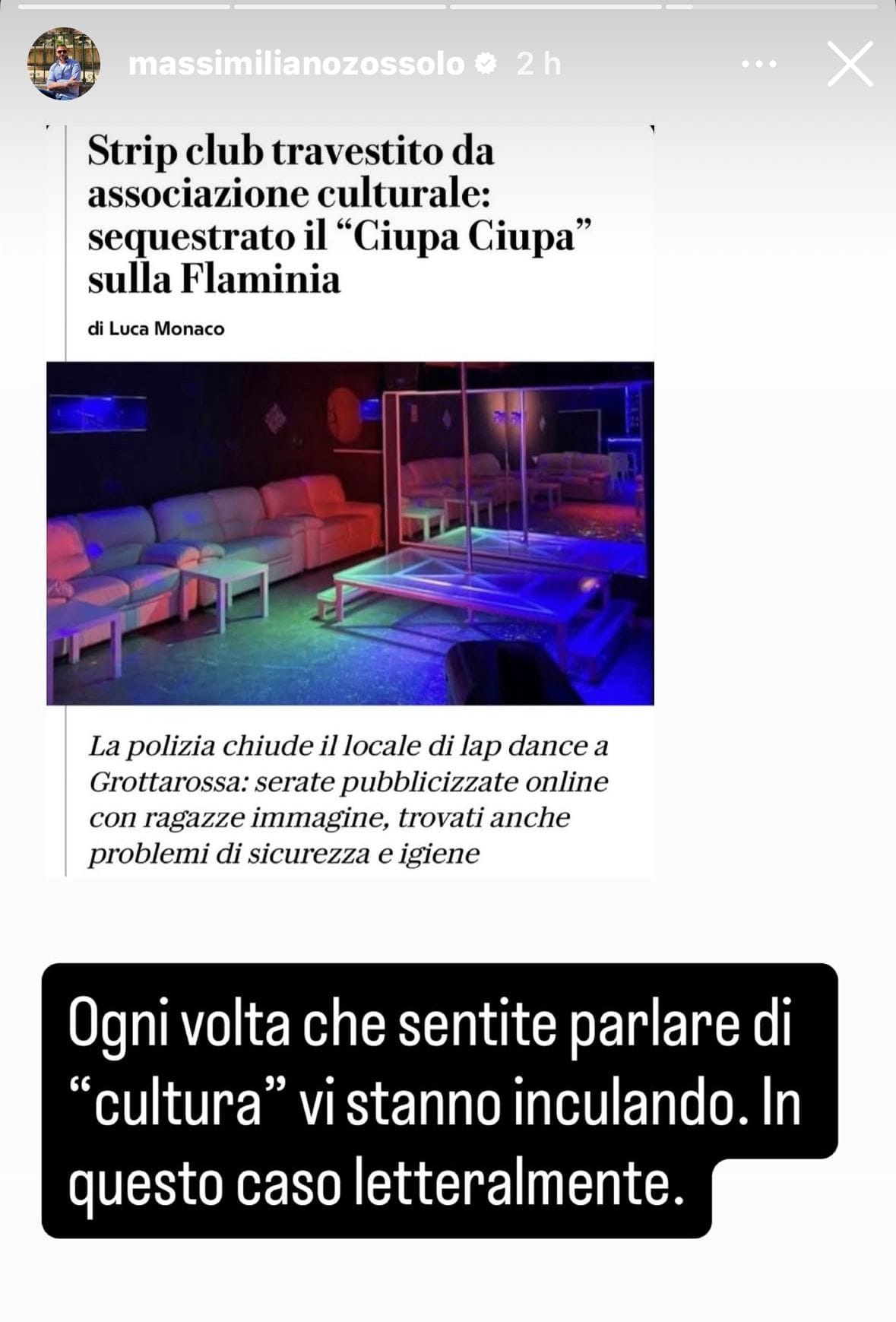 Massimiliano Zossolo, il creatore di Welcome to Favelas che assomma milioni di visualizzazione al mese, ha commentato con una storia fulminante su Instagram sfoggiando un'ironia salace e verace declinata in dialetto romanesco: "Ogni volta che sentite parlare di "cultura" vi stanno inculando. In questo caso letteralmente".
